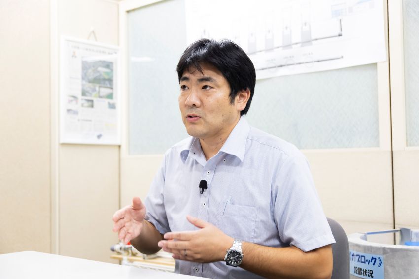 「ハイドロ銀チタンを用いた製品や医療機器等を製造販売されているDRC医薬さんからご提案をいただき考案した、塗るだけで効果を発揮する工法です。ボウフラ以外の微生物には影響を与えず、環境汚染や自然を破壊することなく、蚊だけをターゲットにすることができます」そう語るのは、豊国コンクリート秦野工場・技術部の長沢諒佑さん。公害防止管理者の資格を持つ技術者です。